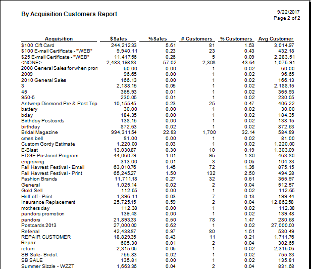 The By Acquisition report shows sales according to how the customer came to be a customer as indicated by the Why In field on the Point of Sale window. It requires only that you select a time frame.