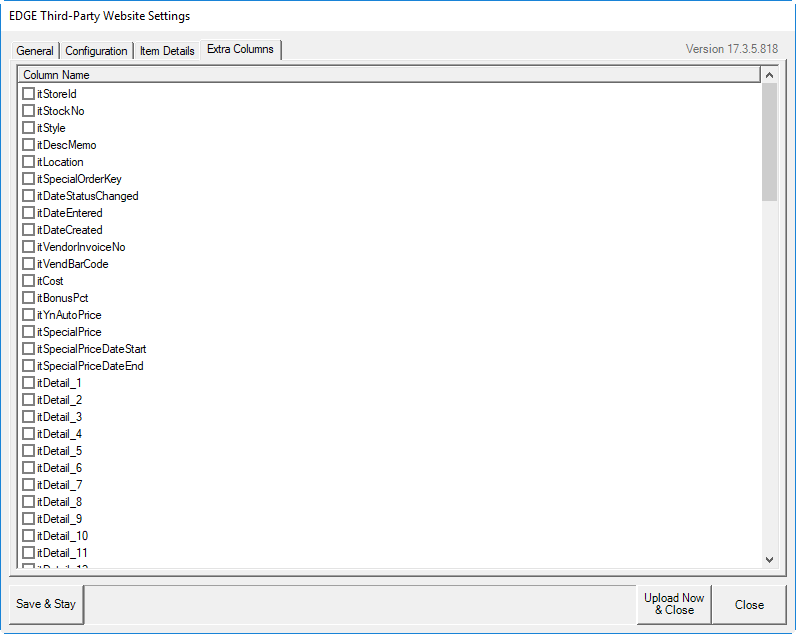 The Extra Columns tab offers a number of additional fields that can be pulled from The Edge and included in the upload.