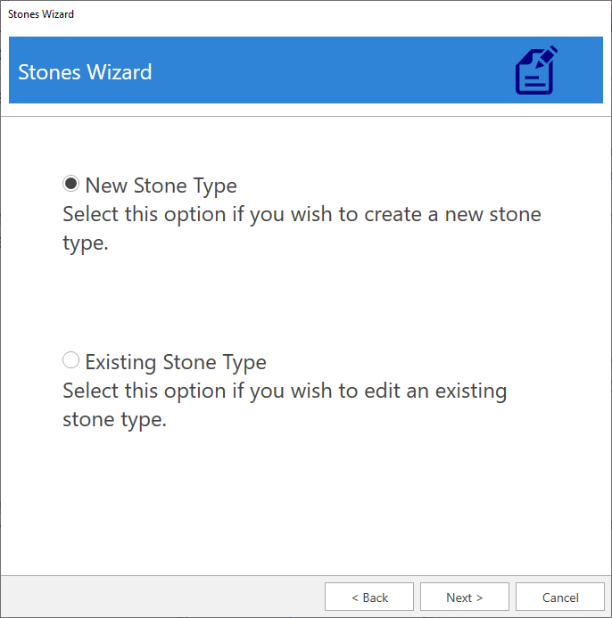 3. Select New Stone Type and click Next.