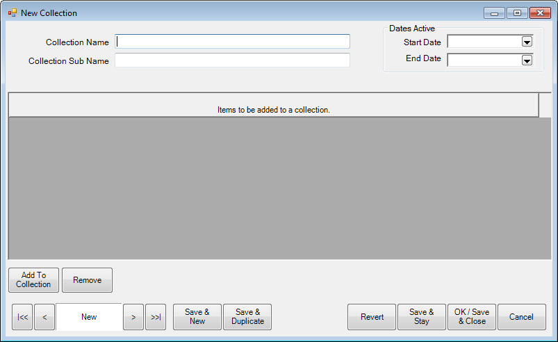 1. From the Inventory menu, select Items ► Collections ► Add. The New Collection window will appear.