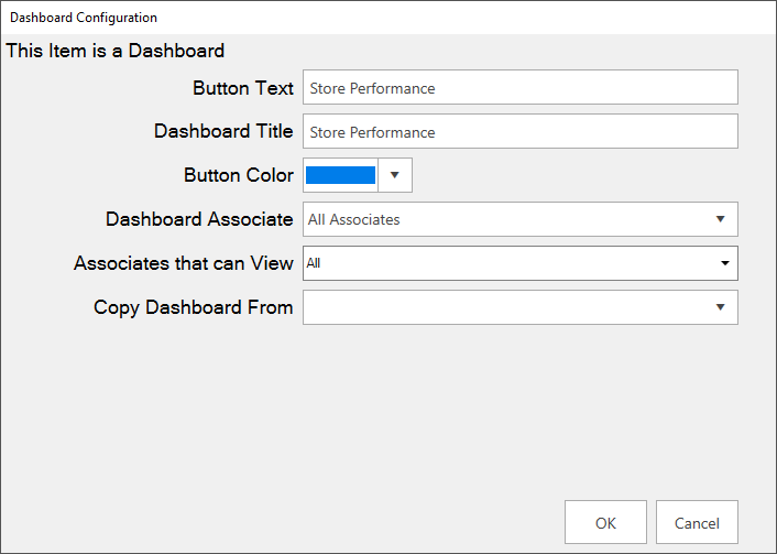 2. All fields, with the exception of Copy Dashboard From, are required. Fill them in and click OK. The Dashboard Management window will appear.
