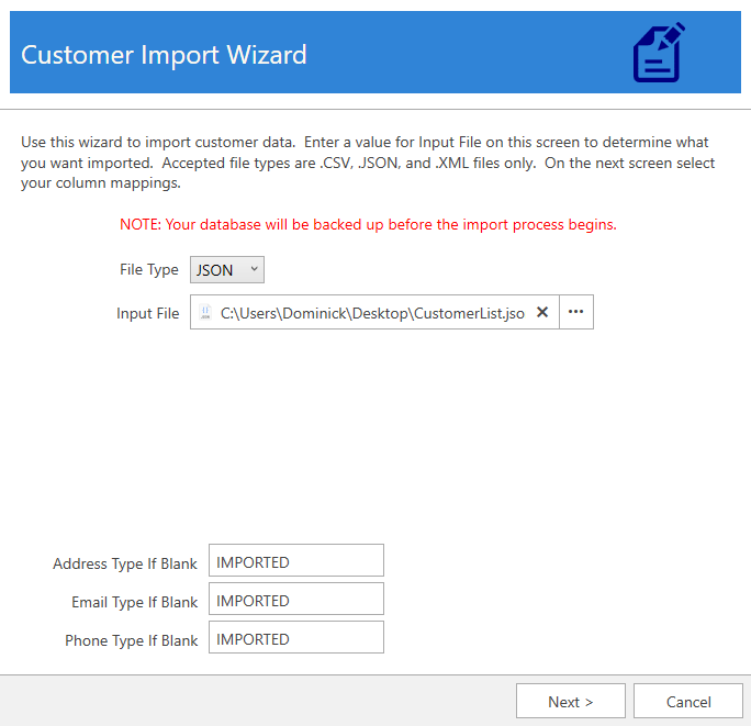 7. Check whether you want to Show Updated/Imported Customer List, then click Next to perform the import. A backup of the database is automatically made at this time. Depending on the number of imported files, this could take some time to complete.