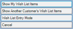 3. From this menu, select Wish List Entry Mode. The Point of Sale window will change to remove non-Wish List functions.