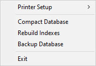 The File menu contains options for printing, compacting the database, backing up the database, and exiting The Edge.