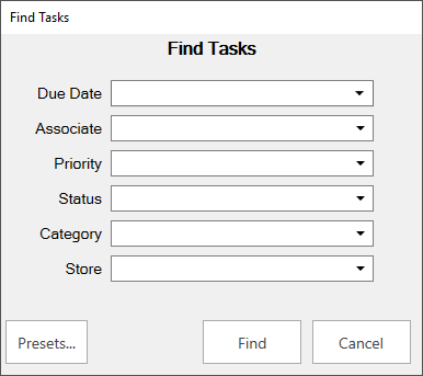 Find Tasks allows you to look up, edit, and complete tasks. To use it: