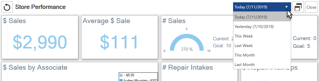 Week, This Month, or Last Month. There is a drop-down