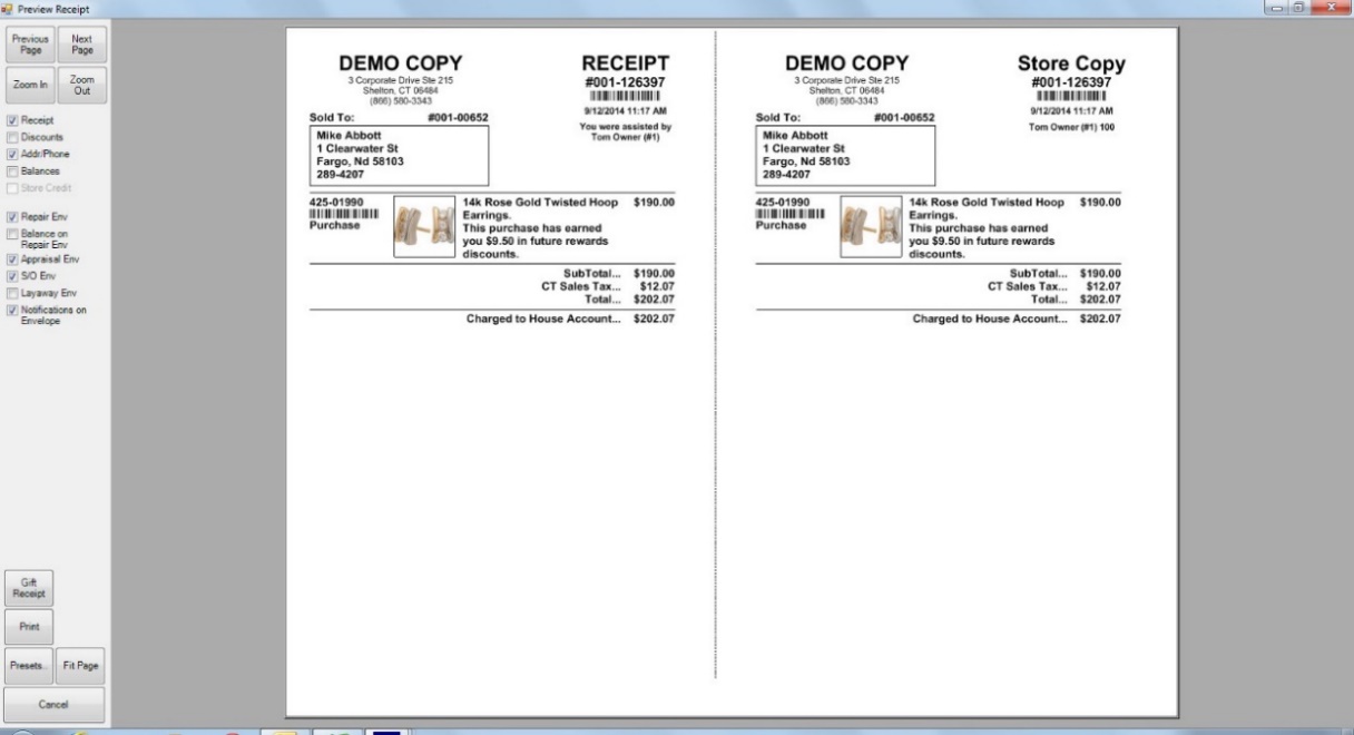 2. From the lower left corner of the Preview Receipt window, select Gift Receipt. The Gift Receipts window will appear.