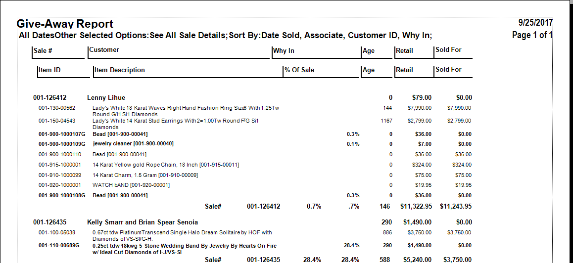 The Giveaway report found on the Management Reports menu provides a breakdown of promotional giveaways by age and sale.