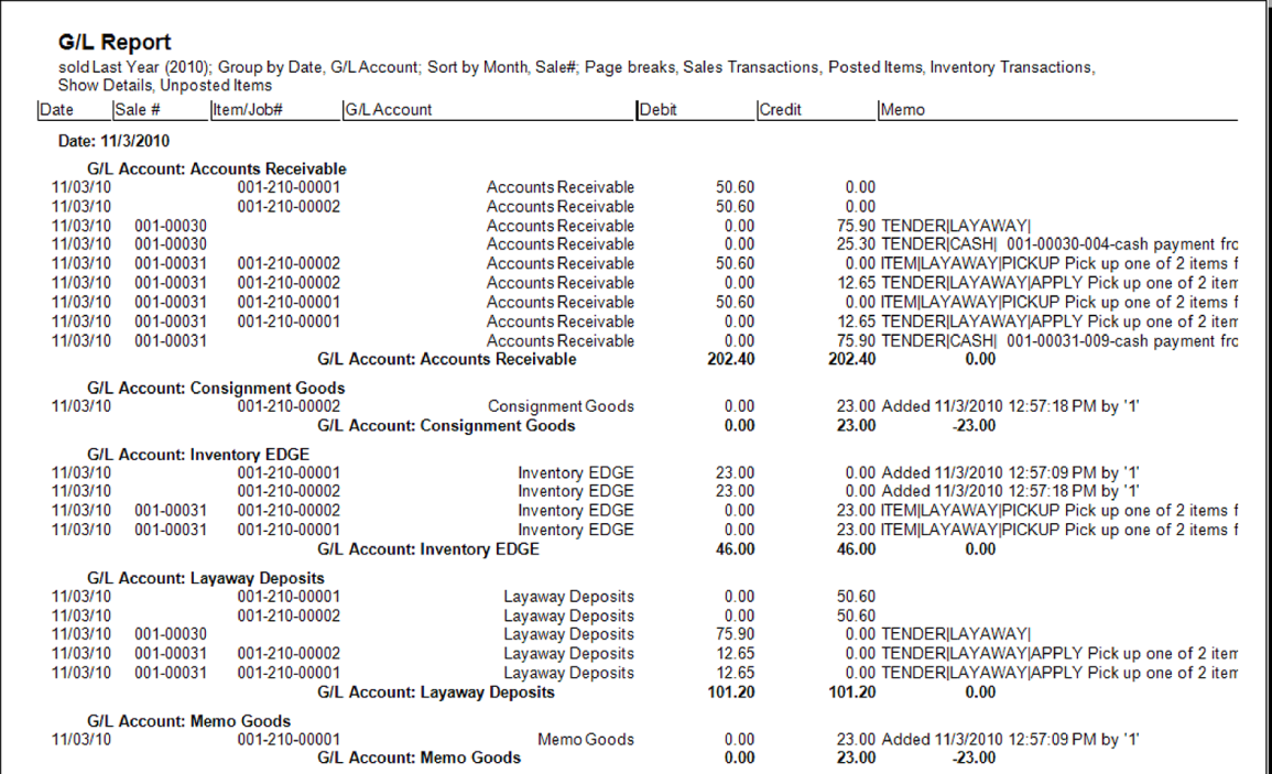 The G/L Report details how The Edge interacts with QuickBooks. It is a useful tool in analyzing how The Edge data is translated into debits and credits. To use the G/L Report, you must first integrate The Edge with QuickBooks. See the section entitled Mapping The Edge with QuickBooks Accounts, for more information on this process.