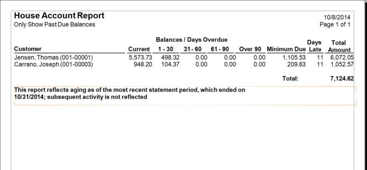The amount that is unpaid for between 1 and 30 days since the last closing. |