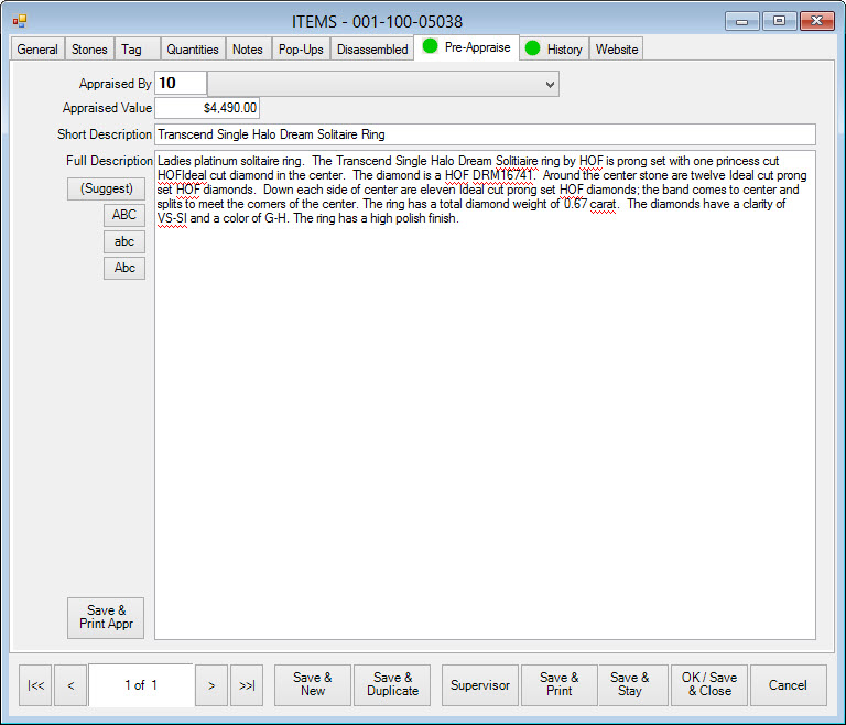 Once the item is sold, you can print this appraisal directly from the Pre-Appraise tab of the sold item.