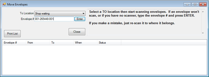 Then, using the Move Envelope, you can track the location of a job. To move a job as it moves through processing: