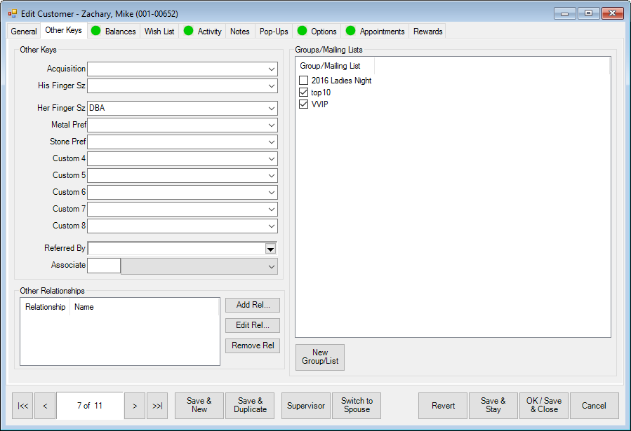You can manage what groups/lists a customer belongs to directly from their customer record. This method only allows you to add/edit/delete one customer at a time from a group/list. To do so: