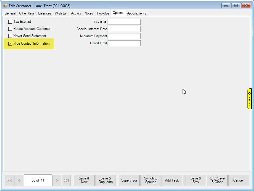 Once Associate Permissions have been set, you are ready to mark customers as hidden. To do so, you will need to pull up the customer record: