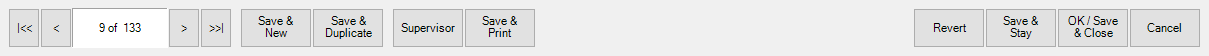 Options in the record navigation bar allow you to navigate between records and save records in several ways. These apply to all the sections of The Edge.