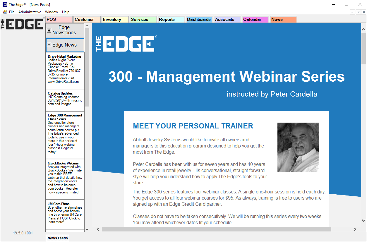 The Edge News feed is a communication channel to keep you up-to-date about items of interest concerning The Edge. This is the start page for The Edge and contains information about updates, releases, patches, webinar schedules, and training opportunities. Headlines run down the left side and content occupies the main work area. We recommend you review the Newsfeed daily.