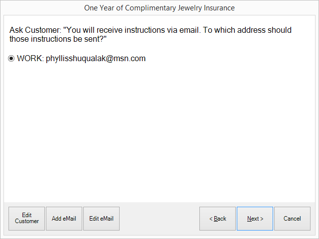 5. If needed, make changes to the customer’s email address and select Next. You will be prompted to submit the information to Jewelers Mutual Insurance Company.