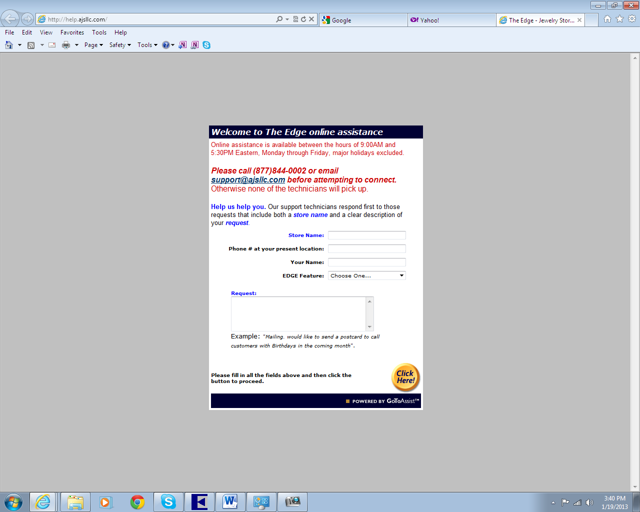 To obtain assistance from The Edge Support Team on-line: