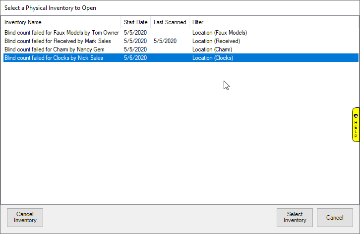 4. A count may be cancelled with management override by selecting Cancel Inventory.