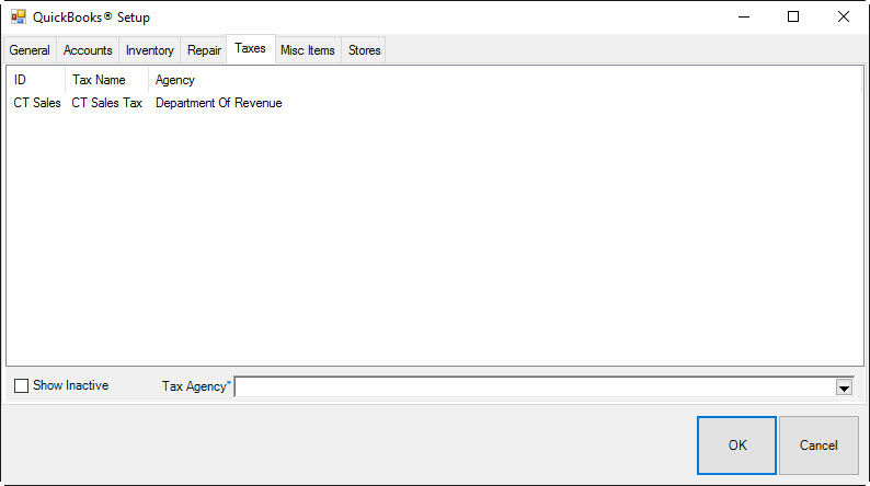 The Taxes tab is for identifying the vendors, or governmental body, to whom sales tax is paid.