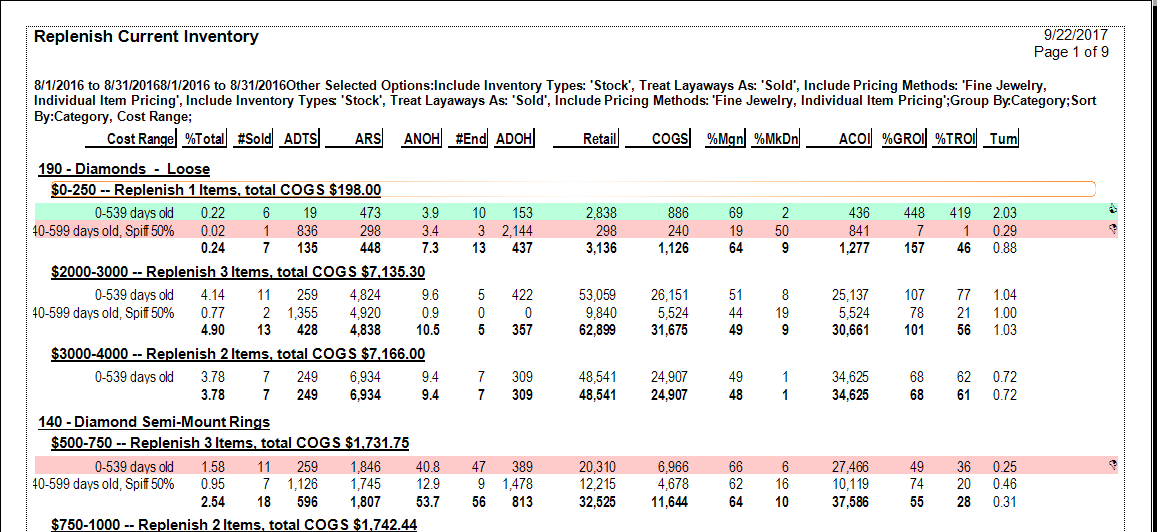 The Replenish Current Inventory report shows categories that performed reasonably well and might make good areas for in which you might consider investing. This report works in concert with the Replenish Base Stock report found in the Inventory Buying Tools feature.