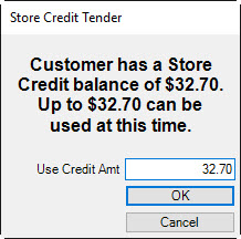 1. Select Store Credit from the Point of Sale window. The Store Credit Tender window will appear.