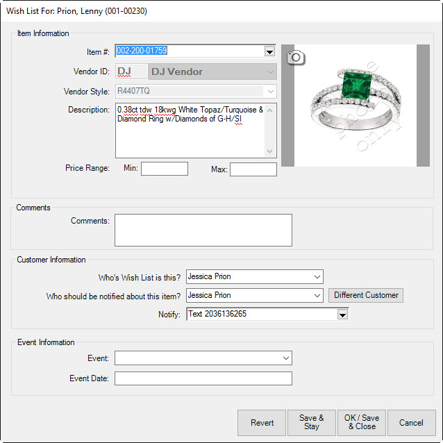 6. Select OK/Save and Close. You will be prompted to send a notification that the wish list was updated.