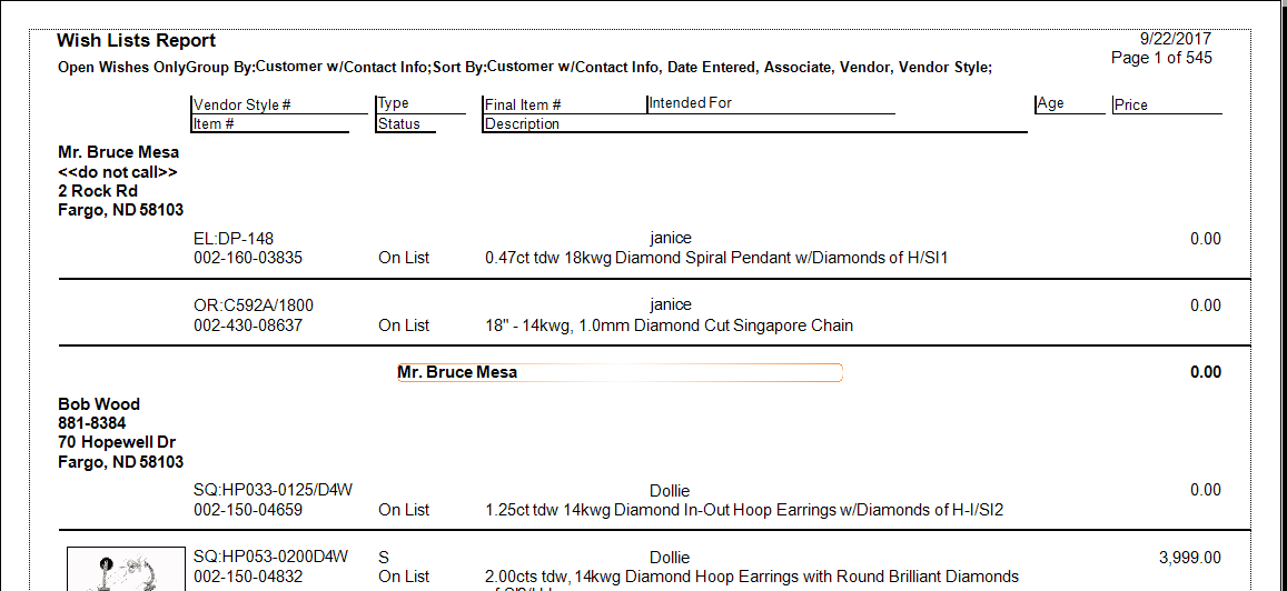 The Wish List report gives your customers the opportunity to record items they would like to receive as a gift. For more information on this feature, see the section entitled Wish List. The Wish List report requires only that you select a time frame. For more about report filters and settings, see the section entitled Creating a Report.